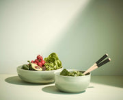 Das Salatbesteck besteht aus hochwertigem Akazienholz oder Gummibaumholz, je nach Farbe, und hat einen ergonomischen Griff aus schwarzem Nylon. Das Salatbesteck ist matt lackiert und hat eine Länge von 24. Es ist ideal zum Servieren von frischen Salaten oder zum Mischen von Dressings. Das Salatbesteck ist ein handgefertigtes Unikat mit Charakter und Persönlichkeit. Es ist ein schönes Geschenk für alle, die Wert auf Qualität und Design legen.