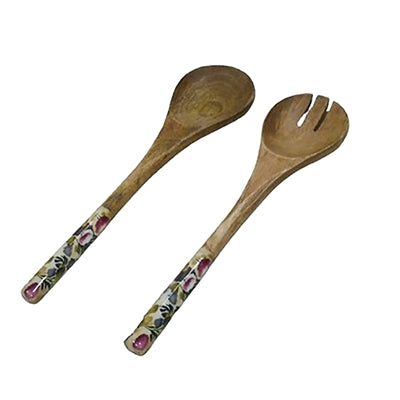 Hochwertiges Salatbesteck aus natürlichem Olivenholz Dieses elegante Salatbesteck aus 100% natürlichem Olivenholz ist mit einem dekorativen Bastban...