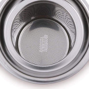 Farbiger Becher aus Porzellan mit Edelstahlsieb und Porzellandeckel