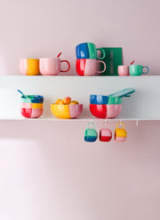 Die „joy“ Espressotassen aus Porzellan mit 0,09 Liter Fassungsvermögen passen perfekt zu trendig bunten, lebendigen Interieurs. Ein stylisch großer Henkel rundet die verspielte Optik der bauchigen Tassen ab. Der "joy" Brotteller kann dazu als Untertasse verwendet werden.