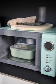 in der Küche. Mit einem Klick lässt sich die Frischhaltedose auslaufsicher und luftdicht verschließen, aber ebenso im Handumdrehen eine leckere Mahlzeit auf den Tisch zaubern.