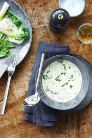 Der Saucenlöffel ist das ideale Besteck für flüssige Speisen. Im Vergleich zum Suppenschöpfer ist die Stiellänge fast identisch, das Schöpfelement fällt jedoch leichter und kleiner aus. Der WMF Saucenlöffel, der in verschiedenen WMF Designs erhältlich ist, portioniert und serviert warme Bratensaucen oder kalte Dressings. Praktisch ist seine beidseitige Schnaupe – so eignet er sich gleichermaßen für Links- und Rechtshänder. Der Saucenlöffel ist ein vielseitiger Helfer, der Dein Besteck sinnvoll ergänzt.