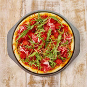 Für besonders krosse Böden I Erstklassiger, perforierter Karbonstahl I Stabile Ausführung I Hochwertige Marken-Antihaftbeschichtung von Whitford I Hitzebeständig bis 230 °C I Mit seitlichen Griffflächen I Einfache Reinigung per Hand I Mit Rezept