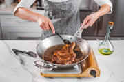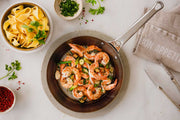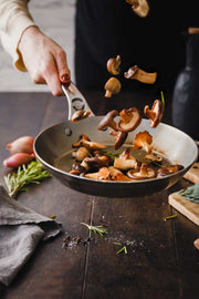 Die Pfanne wird sehr heiß und brät die Lebensmittel so schnell an, dass Vitamine und Nährstoffe erhalten bleiben. Garqualität: hohe Temperatur = ideal zum kurz Anbraten, Bräunen und Grillen. Einbrennen: Je länger die Pfanne im Einsatz ist, desto besser gart sie und immer weniger haften die Lebensmittel an