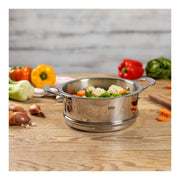 Verwandeln Sie Ihr Kochgeschirr mit dem richtigen Zubehör in ein Multitalent. Ein einziger Topf reicht aus, um ein komplettes Menü zu zaubern. Der Dämpfaufsatz ermöglicht schonendes Garen von Gemüse, Fisch und Fleisch sowie die Zubereitung von Teigtaschen wie Momos oder Blattwickeln wie Capuns. Er passt perfekt zu allen Kuhn Rikon Kochtöpfen mit einem Durchmesser von Ø 18 cm oder 20 cm und sorgt für energieeffizientes, gesundes und schonendes Kochen. Die handlichen Griffe ermöglichen ein praktisches und sicheres Herausheben aus dem Topf.