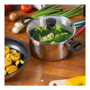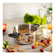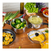 Der praktische und pflegeleichte Classic Edelstahl-Kochtopf mit Glasdeckel ist bestens geeignet für den täglichen Einsatz in der Familienküche. Egal ob leckere Spaghetti, aromatischer Reis oder eine würzige Suppe: das Zubereiten gelingt im Classic Kochtopf problemlos und er ist somit in der Küche unentbehrlich.