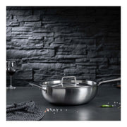 - Die Griffe aus Edelstahl bleiben auch bei hohen Temperaturen kühl und sind daher angenehm in der Handhabung. Der geschlossene Rand ohne scharfe Kanten erleichtert das Ausgießen von Saucen, reduziert das Verletzungsrisiko und sorgt für eine perfekte Präsentation Ihrer Gerichte.
