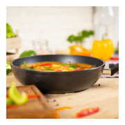 Dank des geschmiedeten Aluminiums bleibt die Pfanne trotz ihrer grossen Höhe sehr handlich und ist für den täglichen Gebrauch bestens geeignet.