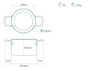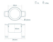 - Ø 16cm | Höhe: 9,5cm | 1,7L bzw Ø 20cm | Höhe: 9,5cm | 2,7L