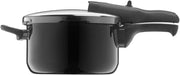 - TÜV-geprüftes Sicherheitssystem - Schnellkochen mit absoluter Sicherheit durch das TÜV-geprüfte 5-Stufen-Sicherheitssystem mit automatischer Dampfabschaltung, Restdrucksicherung, Sicherheitsschlitz, Überdrucksicherung und Verriegelung.