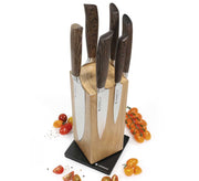 Durch starke Magnetstreifen auf jeder Seite können bis zu 8 Messer mit einer Länge von bis zu 23 cm sicher befestigt werden. Die drehbare, kugelgelagerte Basisplatte sorgt für einen schnellen und einfachen Zugriff. Das edle und zeitlose Design aus Eichenholz und schwarz beschichtetem Edelstahl macht diesen Messerblock zum Blickfang in Ihrer Küche.