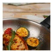 Mit der unbeschichteten CLASSIC Bratpfanne aus Edelstahl bringen Sie Ihre Fleischstücke gehörig ins Schwitzen. Die unbeschichtete Edelstahloberfläche eignet sich ideal, um Speisen bei hohen Temperaturen scharf anzubraten und so köstliche Röstaromen zu entwickeln – von saftigen Steaks bis hin zu knackigem Gemüse.