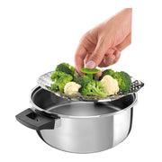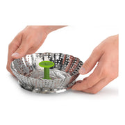Praktischer Dämpfeinsatz aus Edelstahl für Töpfe von 16-24cm Durchmesser. Platzsparend zusammenklappbar.