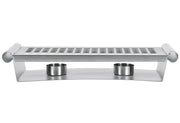Genießen Sie warme Speisen mit dem APS Speisenwärmer aus glänzend poliertem Edelstahl. Dank der 2 Flammen und 2 Teelichter bleibt Ihr Essen stets warm und geschmacksintensiv. Die elegante, silberne Optik des 34x13x6cm großen Wärmers fügt sich perfekt in jede Tischdekoration ein.
