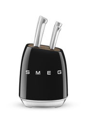 Der SMEG Messerblock besticht durch sein edles Design mit feinen Details aus Akazienholz und einem robusten Gehäuse aus pulverbeschichtetem Karbonstahl. Die rutschfeste Basis sorgt für Stabilität und Sicherheit während der Benutzung.
