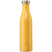 Die Isolierflaschen sind mit einem Fassungsvolumen von 0,5 Liter und 0,75 Liter erhältlich. Die 0,75l-Flasche ist 29,5cm groß, hat einen Durchmesser von 7,4cm und ist 320g leicht. Die Flaschen haben ein schlankes und elegantes Milchflaschendesign, das in viele Getränkehalter passt. Die Flaschen sind in vielen unterschiedlichen Farbtönen erhältlich.