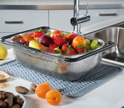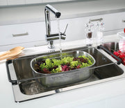 Mit seinen ausziehbaren Griffen passt das Sieb von KÜCHENPROFI auf nahezu alle Spülbecken und wird so zum vielseitigen Küchenhelfer.