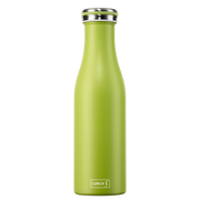 Die Isolierflaschen sind mit einem Fassungsvolumen von 0,5 Liter und 0,75 Liter erhältlich. Die 0,5l-Flasche ist 24cm groß, hat einen Durchmesser von 6,5cm und ist 260g leicht. Die Flaschen haben ein schlankes und elegantes Milchflaschendesign, das in viele Getränkehalter passt. Die Flaschen sind in vielen unterschiedlichen Farbtönen erhältlich.