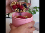 Der Ellipse Lunchpot von Mepal ist eine praktische Transportmöglichkeit, um einen kleinen Snack oder eine Zwischenmahlzeit mitzunehmen. Mit zwei verschiedenen Behältern, in denen sich die Zutaten getrennt voneinander aufbewahren und transportieren lassen. So wird aus dem Mepal Lunchpot ganz einfach ein praktischer Suppenbecher, Joghurtbecher oder Müslibecher to go.