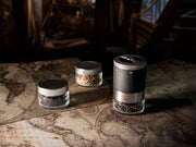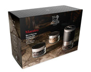 Mit der Geschenkbox Maestro bietet Peugeot das ideale Instrument, um die Welt des Pfeffers zu entdecken: eine Pfeffermühle Made in France mit drei Glasbehältern zum Auswechseln in Kombination mit einer Auswahl von drei erlesenen Pfeffersorten mit außergewöhnlichen Aromen. Maestro lädt zu einer neuartigen, geselligen Erfahrung rund um Pfeffer und seinen Geschmack ein. Um das volle Aroma des Pfeffers zu entfalten, spielt die Größe des Mahlgrades eine wichtige Rolle. Ein feiner Mahlgrad bringt die Schärfe des Pfeffers zum Ausdruck, ein grober Mahlgrad hebt die Aromen stärker hervor. Aus diesem Grund hat Peugeot seine Mühle Maestro mit der sechsstufigen Mahlgradeinstellung u'Select ausgestattet.