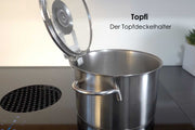 Topfi ist ein Topfdeckelhalter, der an dem Topf angebracht wird.