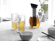 • Glas-Karaffe mit feinmaschigem Teesieb aus Edelstahl
