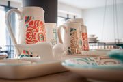 Nach der Formgebung der Keramik wird jedes Teil von Hand weiterverarbeitet und bemalt - dadurch wird jedes Stück einzigartig. Abschließend wird die Keramik bei 1000°C gebrannt, wodurch sie robust, hitzebeständig und spülmaschinenfest wird.