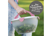 • 4 sichere Verschlüsse halten den Deckel fest auf der Schüssel • mit praktischem Tragegriff • integrierter Behälter (ca. 0,3 l) für Dressing|