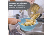 • 4 Aufsatzrasten sorgen dafür, dass der Seiher fest und ein Stück erhoben auf einem ø 24 cm Topf sitzt. So bleibt viel Platz zum Abtropfen • Höhe 12 cm|