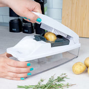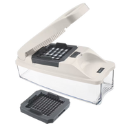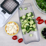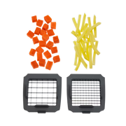 Gemüse oder Obst waschen, in passende Stücke schneiden und durch den Schneider drücken. Die scharfen Klingen schneiden präzise Würfel oder Stifte – perfekt portioniert für Ihre Gerichte. Nach Gebrauch einfach unter fließendem Wasser oder in der Spülmaschine reinigen.