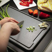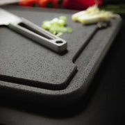Der Braten ist prima gelungen und jetzt geht’s ans Zerlegen. Die Tranchierbretter von ZASSENHAUS leisten Ihnen dabei professionelle Unterstützung. Sie sind ausreichend groß und stehen rutschfest auf Kunststoff-Füßen. Auch bei der Schneidplatte kommt hochwertiger Kunststoff zum Einsatz. Er hält scharfen Messern stand, schont die Klingen, nimmt weder Geschmack noch Gerüche an. Die praktische Saftrille fängt Flüssigkeiten auf. Was Sie nicht sehen, aber beim Gebrauch merken: Die Tranchierbretter werden aus einem Block geschnitten. Im Gegensatz zu vergleichbaren, gepressten Brettern haben Sie eine wesentlich längere Lebensdauer. Die gepflegte Optik der Bretter in Granit und Anthrazit erhöht zusätzlich den Spaß bei der Arbeit.
