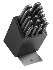 Ein einziger Ort zur jederzeit griffbereiten Aufbewahrung praktisch aller Küchenmesser – kein Problem mit dem FlexTec Messerblock von WMF. Diese vielseitige Aufbewahrungslösung ermöglicht maximale Flexibilität bei der Bestückung mit bis zu 15 Messern – sicher und stabil, dank des speziellen, klingenschonenden FlexTec Einsatzes. Dabei sorgen die stilvolle, schlanke und kompakte Formgebung sowie der Korpus aus edlem Bambus und der stabile Sockel aus hochwertigem Cromargan®: Edelstahl Rostfrei 18/10 für einen eleganten und zugleich platzsparenden Blickfang in jeder Küche und auf jeder Arbeitsplatte