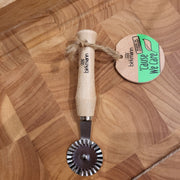 For cutting out rolled out dough, with a light edge decoration, made of beech wood, with metal wheel