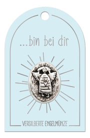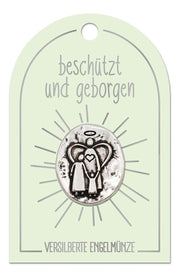 Eine besondere Engelsmünze auf einer liebevoll gestalteten Karte mit inspirierenden Botschaften wie "Ich bin bei dir", "Engel der Freude", "Du bist nicht allein" oder "Beschützt und geborgen".