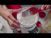 Sieve with digital scales, the all-round baking aid for hands-free as well as automatic sieving and weighing.