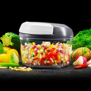 Der Lurch Multi Chopper mit Zugseil II in iron grey/weiß ist Ihr praktischer Küchenhelfer für müheloses Zerkleinern von Gemüse, Obst, Nüssen und Kräutern. Mit dem innovativen Zugseilmechanismus zerkleinern Sie Ihre Zutaten in Sekundenschnelle – ohne Strom, ohne Lärm.
