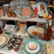Beautiful handcrafted ceramics decorate the dining table. The ceramic is oven, dishwasher and microwave safe.