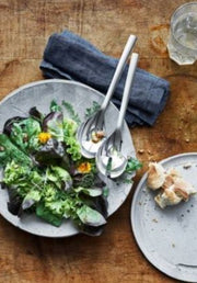 Mix, pick up, serve: There's no question that a fresh salad needs salad servers. It is always in two parts, with its flat, extremely generously designed bowls making it easy to pick up the salad - so that excess dressing can easily drip off before serving. The long handles of the cutlery make it easy to handle and at the same time prevent it from slipping into the salad keys.