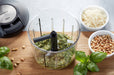Universell einsetzbar und ganz ohne Strom übernimmt dieses Multitalent das Zerkleinern von Obst und Gemüse, Nüssen, Zwiebeln oder Fisch, das Rühren und Mischen von Dip bis Dessert oder auch das Trockenschleudern von Kräutern.