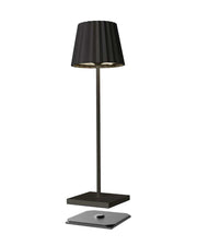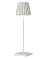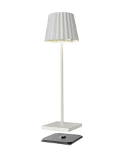 TROLL 2.0 - die Outdoortischleuchte mit dem unverkennbaren Plissee-Schirm. Aus Aluminium gefertigt und in diversen Farben und Mustern beschichtet, kann die TROLL 2.0 dank IP54 Klassifizierung Indoor und Outdoor eingesetzt werden. Die kräftigen Akkus bieten bis zu 24 Stunden kabelloses Licht. Über den Touch-Sensor auf der Oberseite der Leuchte kann die Leuchte stufenlos gedimmt und die zwischen zwei warmweißen Lichtfarben gewählt werden. Über die mitgelieferte Ladestation lässt sich die TROLL 2.0 im Handumdrehen wieder aufladen.